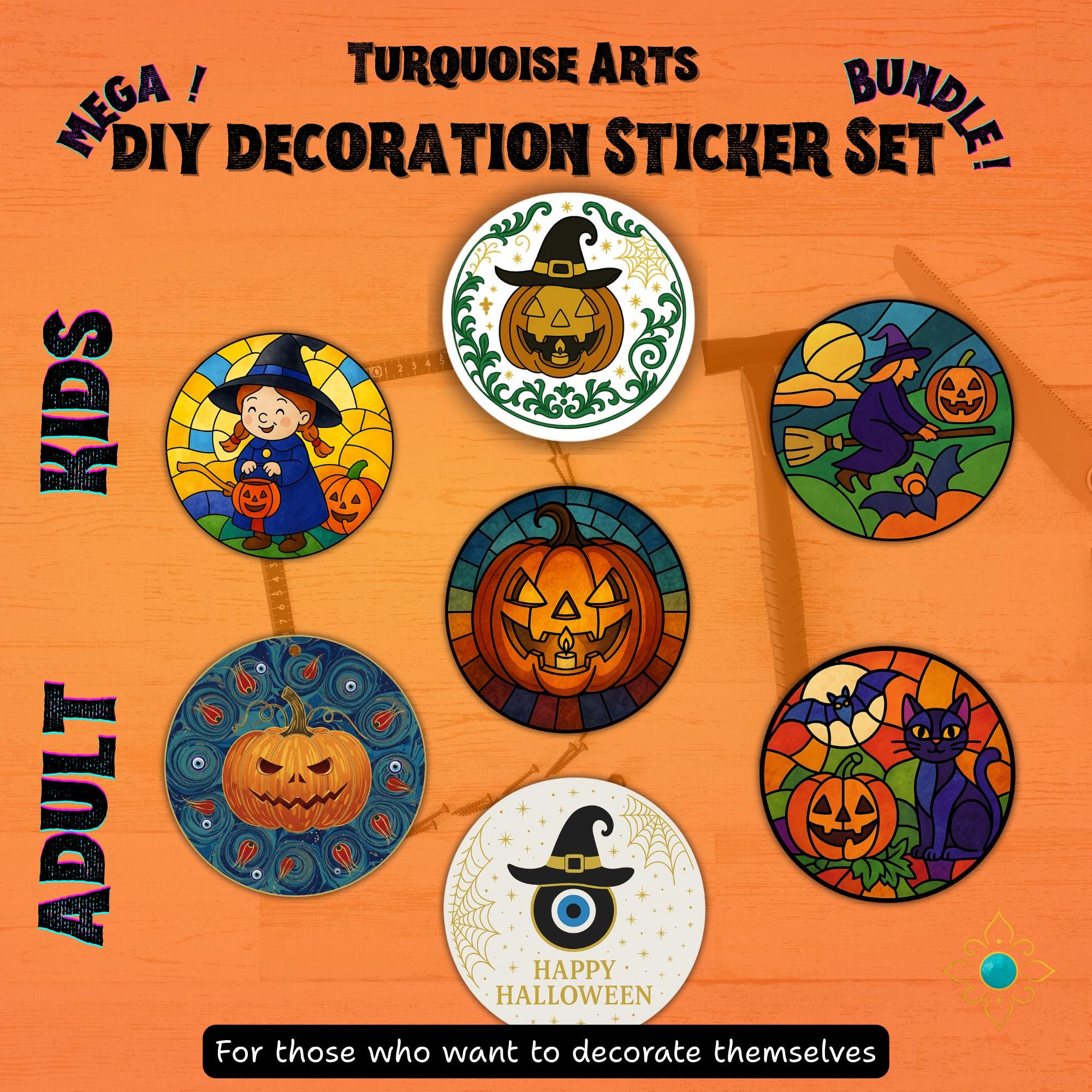Whimsical Halloween Ornament Set: Pumpkin, Witch, Ghost, Cat (DIY Printable)