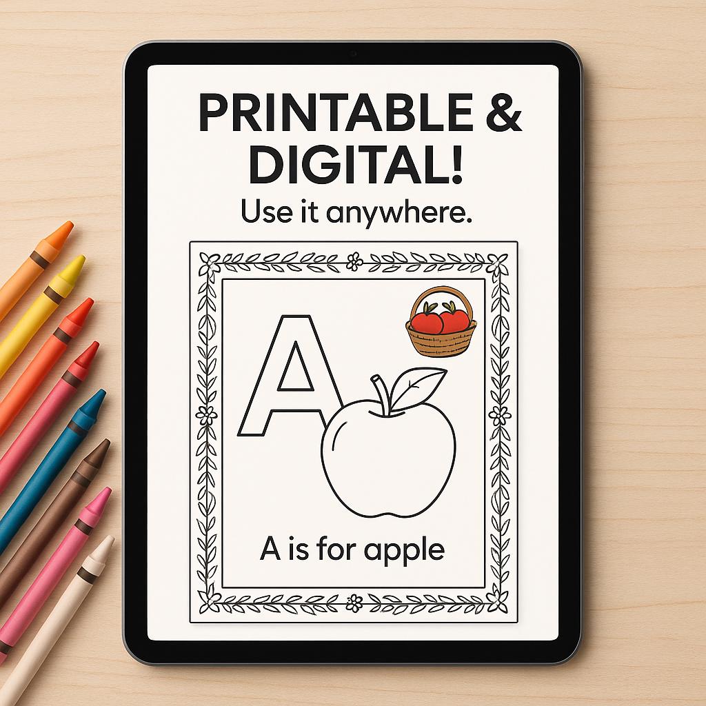 Tags: teacher resource, A4 printable letters, downloadable letter, educational printable, letter recognition, colorable border art, ABC learning aid, letter coloring fun, A to Z coloring pack, letter color pages, printable letters A–Z, ABC art for kids, ABC worksheets