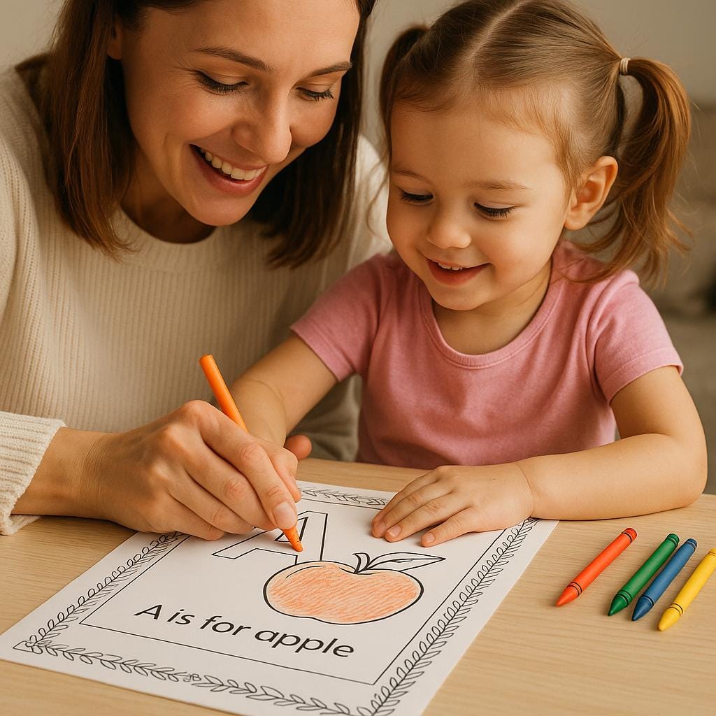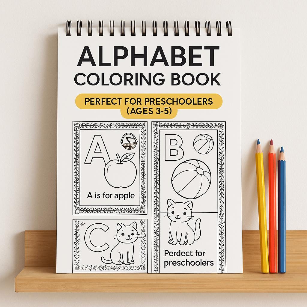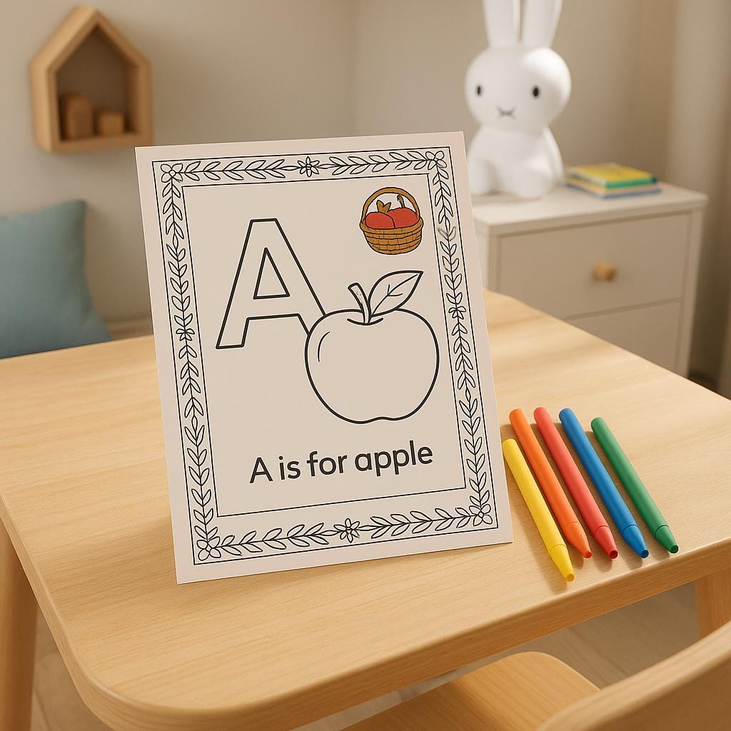 - Colorable borders and fun images to enhance letter recognition and fine motor skills