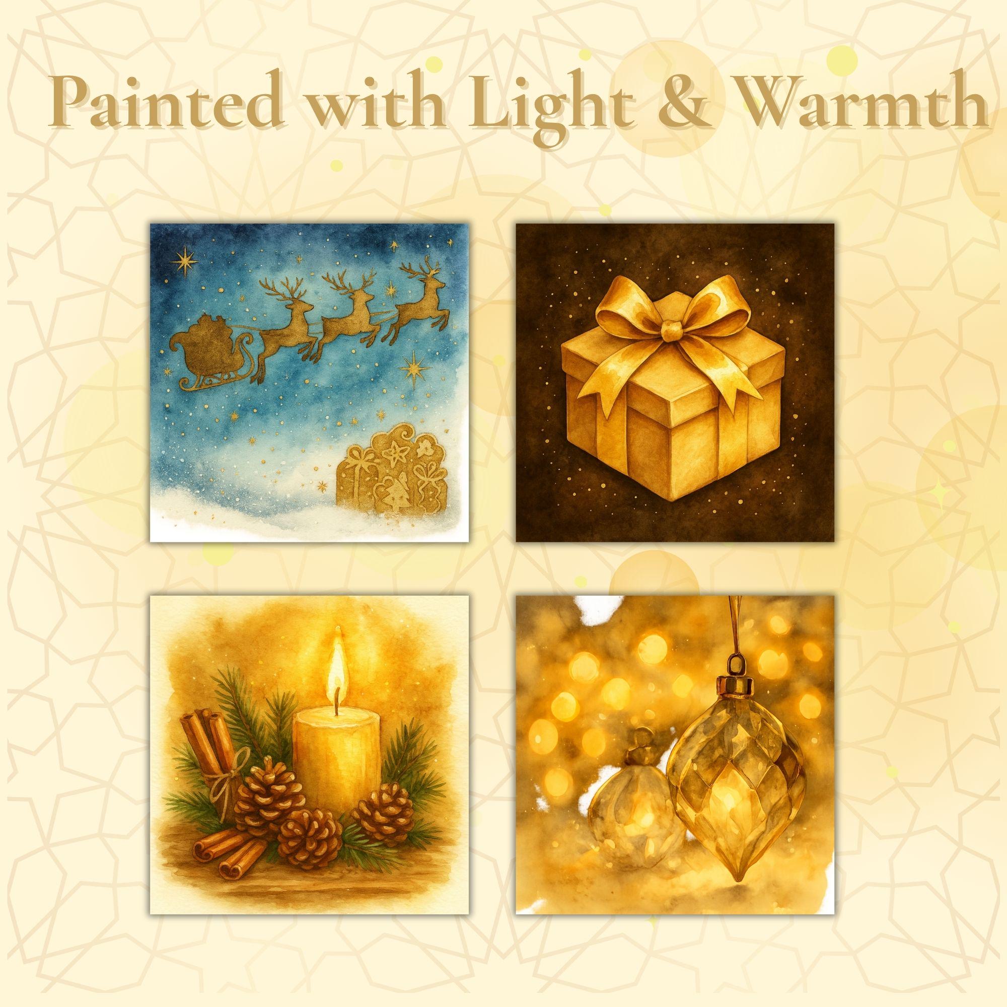 Add a touch of golden glow and handcrafted charm to your holiday projects with this versatile watercolor clipart set. Make your season sparkle with these delightful, festive illustrations that bring warmth, elegance, and joy to your creative world.